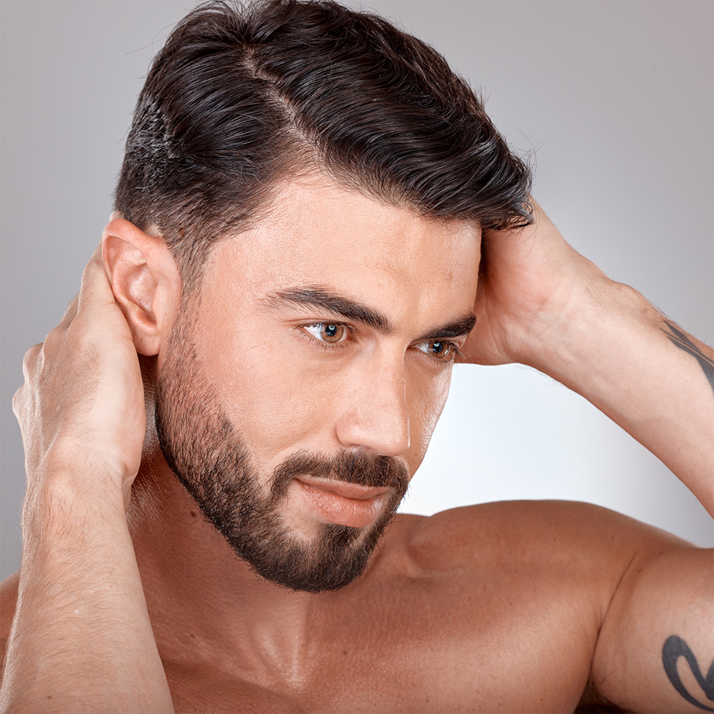 Dans un premier temps, nous pratiquons une technique spécifique de dermopigmentation. L’utilisation du dermographe (appareil utilisé en dermopigmentation) sur le cuir chevelu, la barbe ou les sourcils a pour effet de créer de minuscules perforations (invisibles à l’œil nu) au niveau de l’épiderme (couche supérieure de la peau). S’en suit alors un processus naturel de cicatrisation qui entraîne une production de collagène et d’élastine, la libération de facteurs de croissance et une circulation sanguine améliorée favorables au renforcement et à la repousse des poils et cheveux.